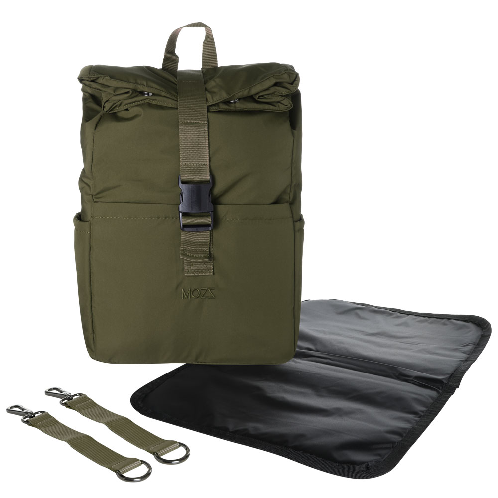 De luierrugzak groen is zowel aan de voor- als achterzijde gemaakt van een mooie stevige kwaliteit stof. De sterke stof luiertas rugzak opent door middel van een goede kwaliteit gespsluiting. Hierdoor krijg je een grote opening en blijft de verzorgingstas rugzak ook goed open staan. Elke zijkant heeft een steekvak om bijvoorbeeld je drinkfles in te bewaren. Aan de voorzijde bevind zich een handig steekvak om vlug wat spulletjes in op te bergen.