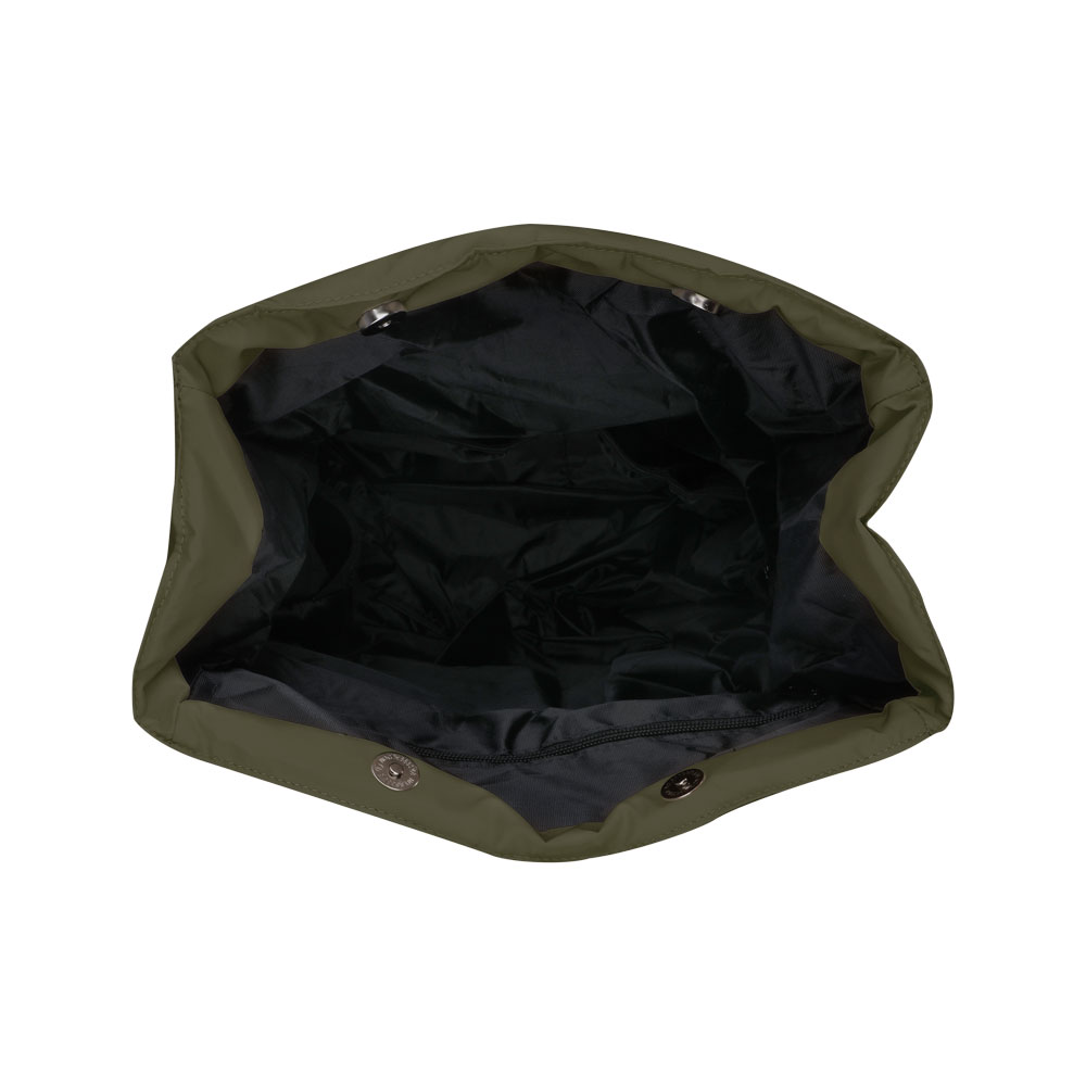 De hele binnenzijde is gevoerd met vuil- en waterafstotend materiaal. Uiteraard wordt er een verschoningsmatje meegeleverd. Ook het matje is vuil- en waterafstotend. Verder bevinden zich aan de binnenzijde van de stoffen luiertas rugzak 4 ruime elastische steekvakken voor luiers, kleding, spenen enzovoorts. Daarnaast is er ook nog aan afsluitbaar ritsvak aanwezig voor wat belangrijke spullen. Het linkse zijvak is voorzien van isolerend materiaal, zodat je korte tijd wat koel of warm kunt houden